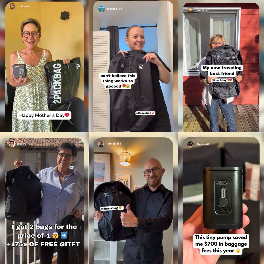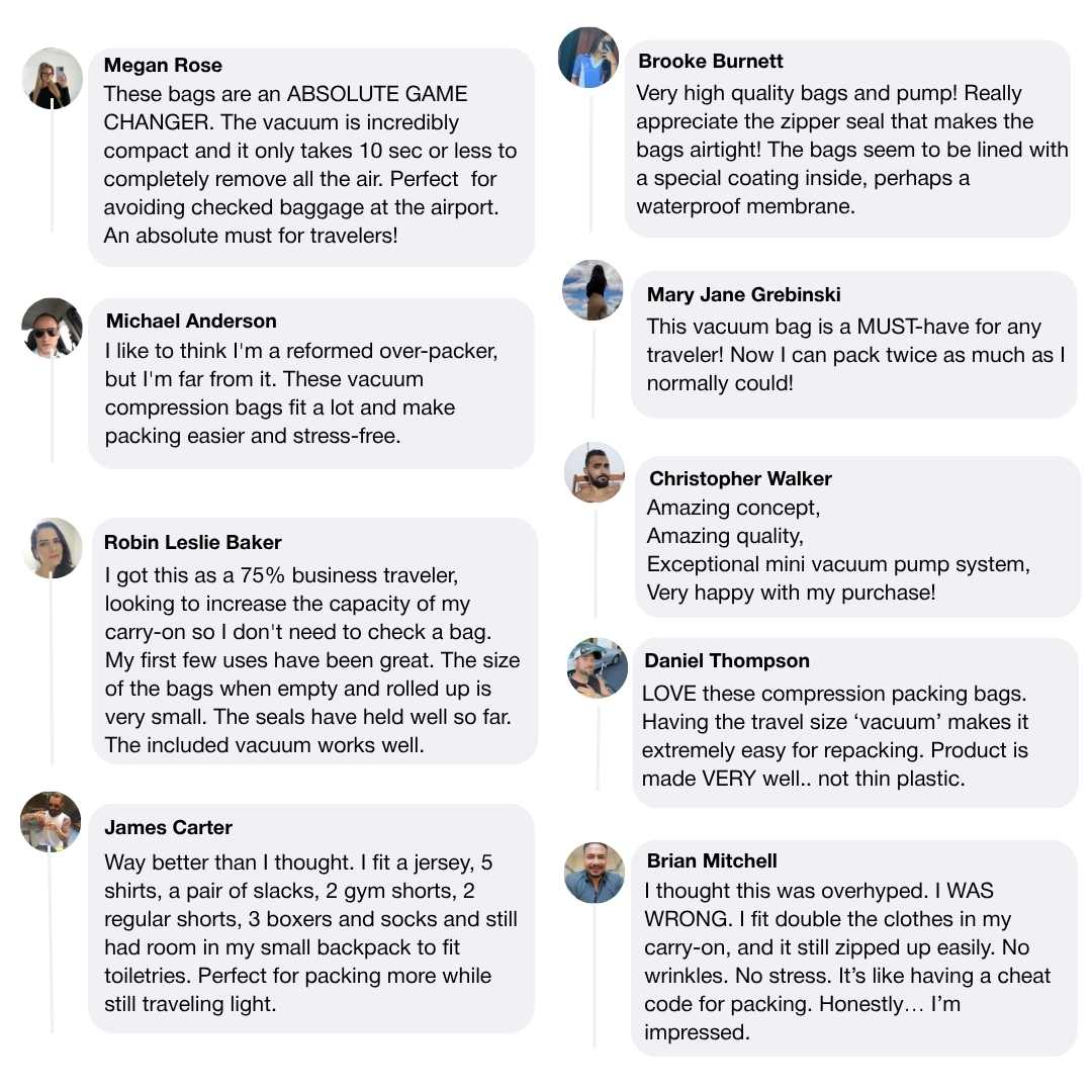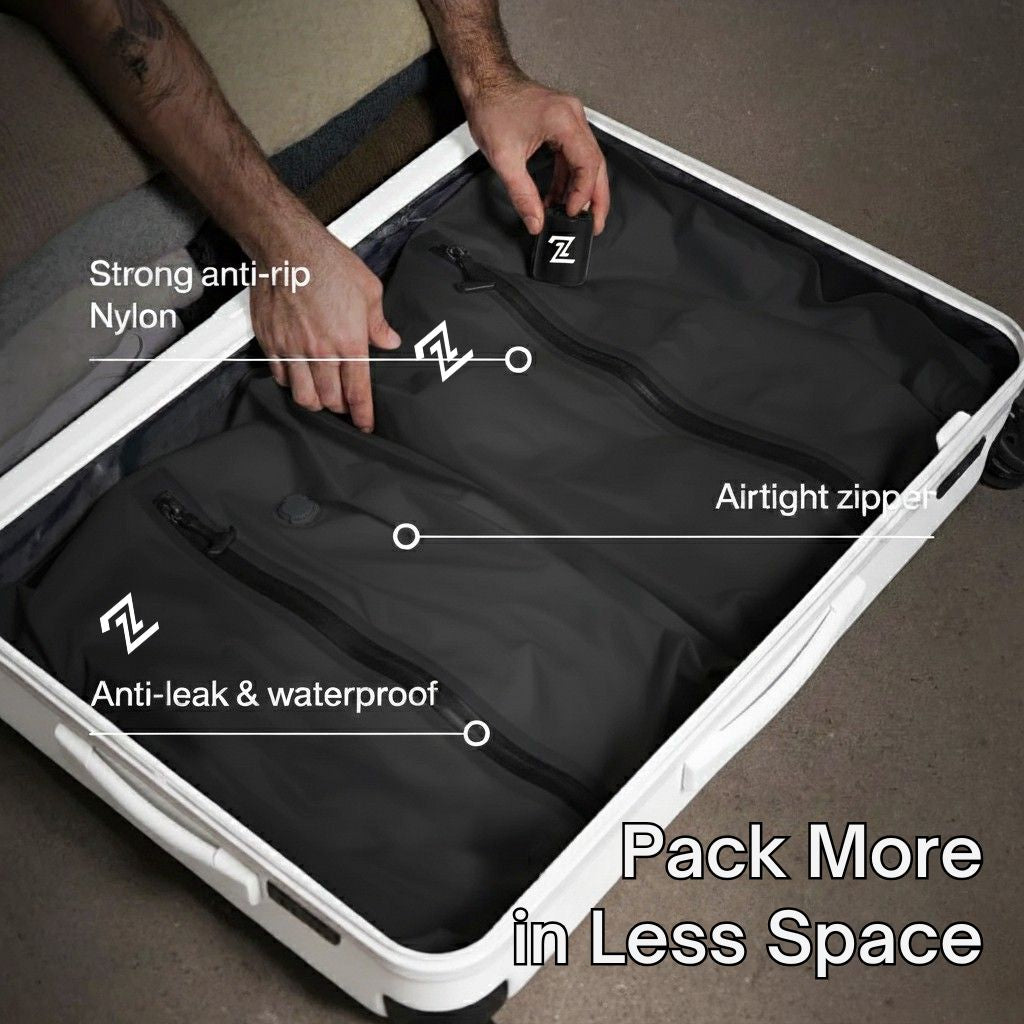 Our vacuum kit works with any bag you already have, giving you more space, better organization, and less travel stress.